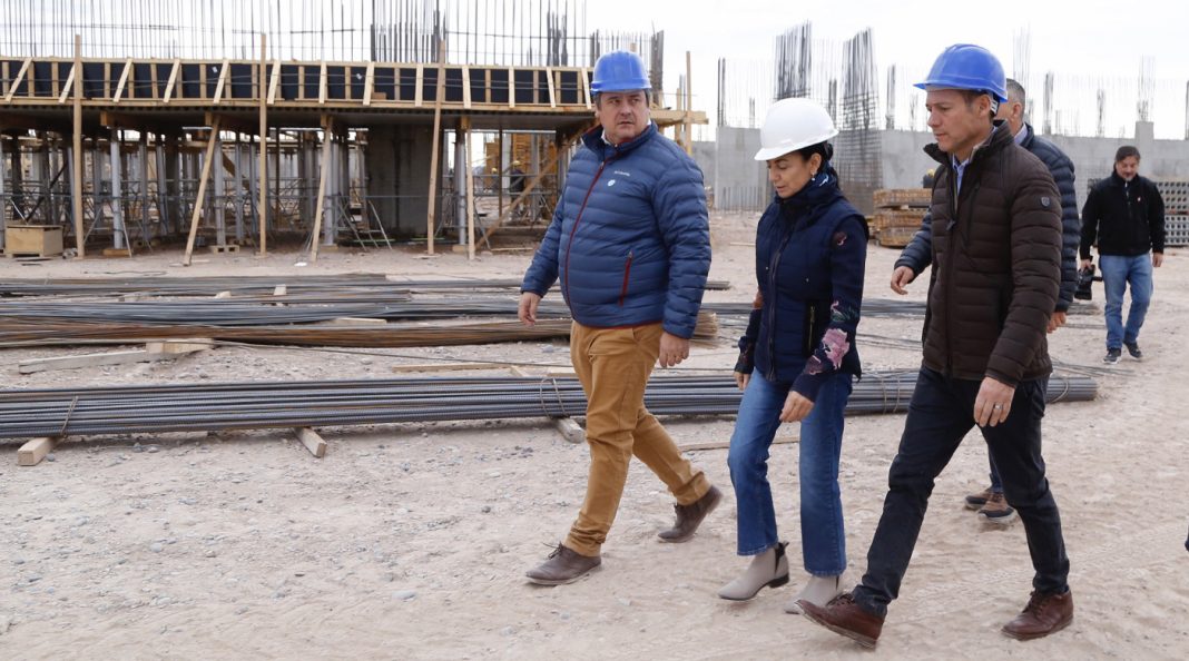 El gobernador Omar Gutiérrez, junto al intendente de Neuquén Mariano Gaido y la ministra de Salud, Andrea Peve, recorrieron hoy los avances de obras del hospital Norpatagónico que se construye en la meseta neuquina. El mandatario destacó la descentralización que aportan al sistema de Salud la incorporación de nuevos hospitales y centros de salud.