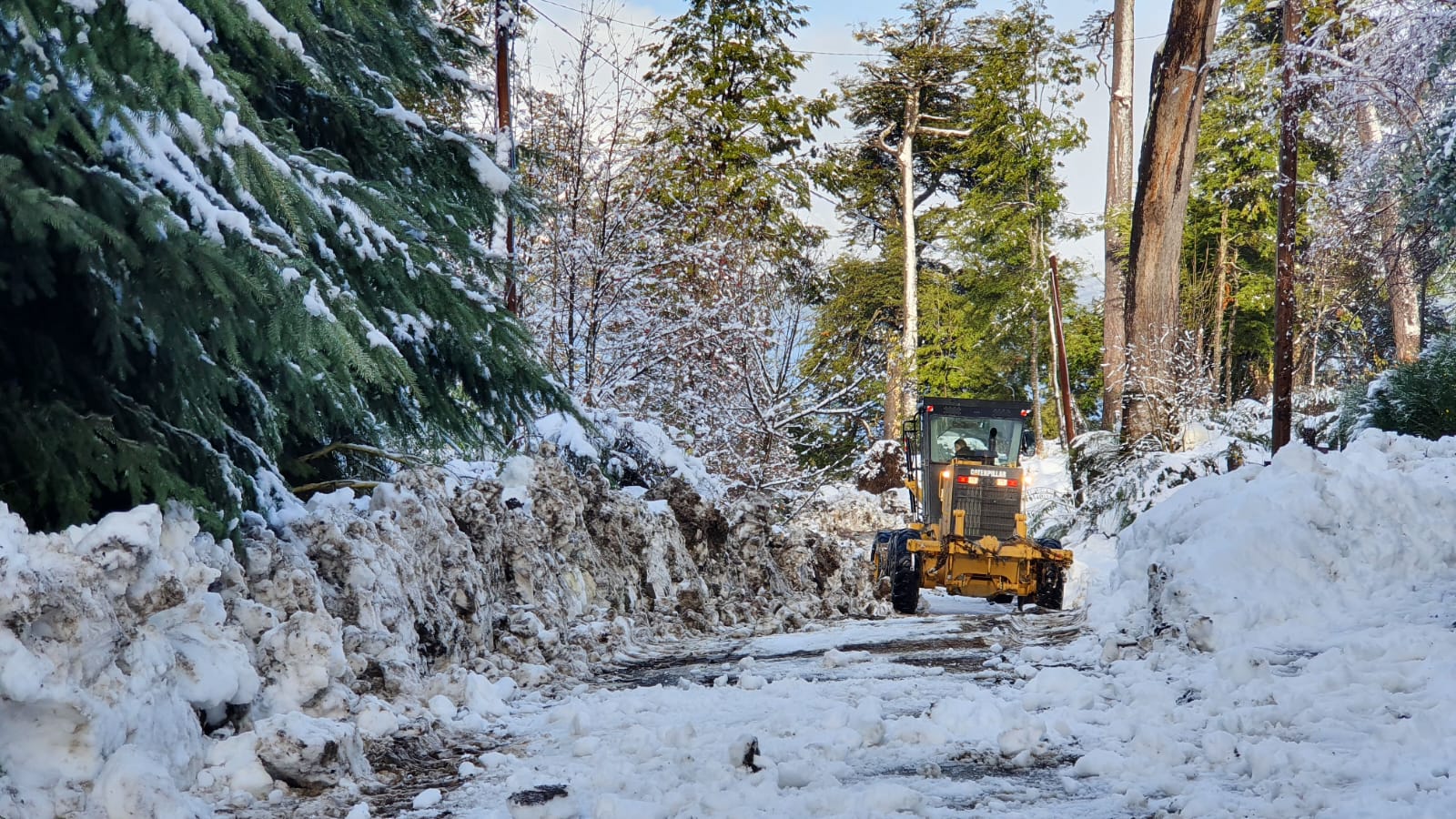 Durante toda la semana, personal municipal trabajó en el despeje de calles y accesos en diferentes puntos, ya que debido a las intermitentes precipitaciones las máquinas no podían mejorar la condición de las calles. Además, distintas cuadrillas se enfocaron en el barrido de nieve y hielo y distribución de sal y arena volcánica para facilitar la transitabilidad peatonal.