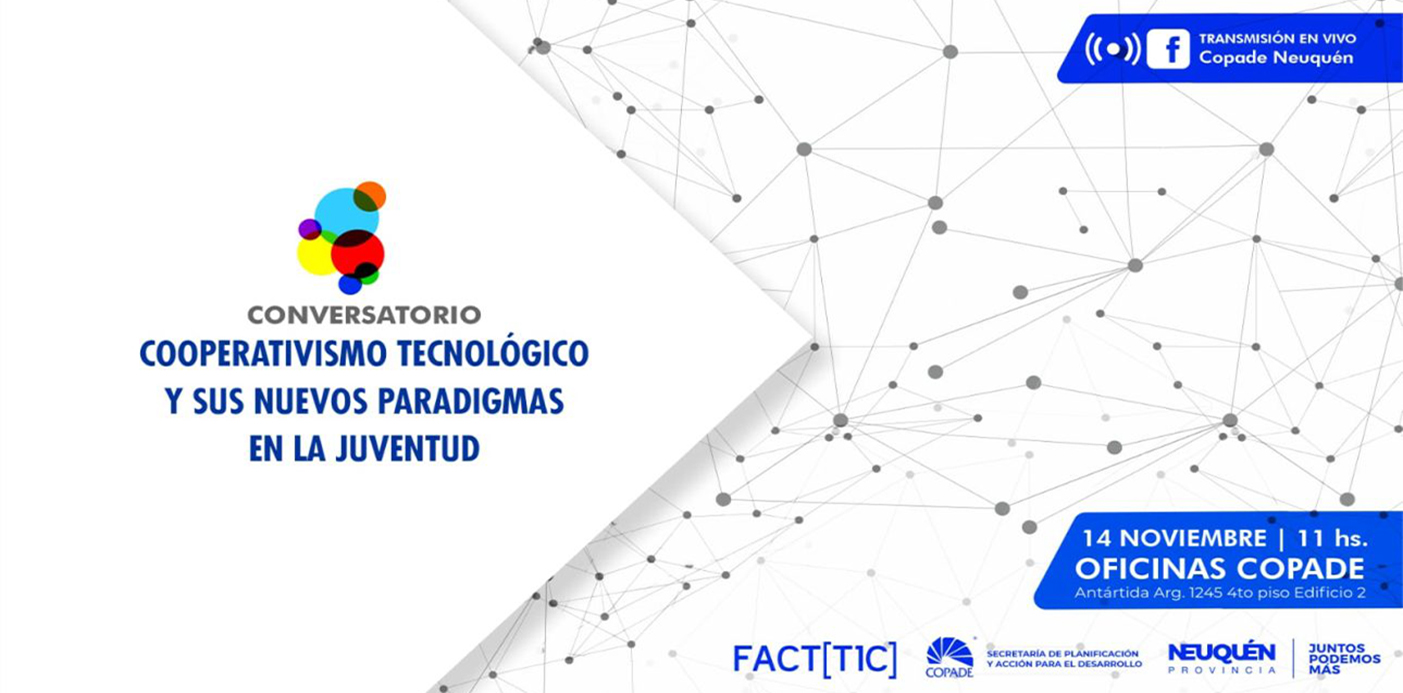 El próximo lunes 14 de noviembre la Secretaría de Planificación y Acción para el Desarrollo (COPADE) organiza un Conversatorio sobre “Cooperativismo, Tecnología y Juventud” en conjunto con la Federación Argentina de Cooperativas de Trabajo de Tecnología, Innovación y Conocimiento (FACTTIC).