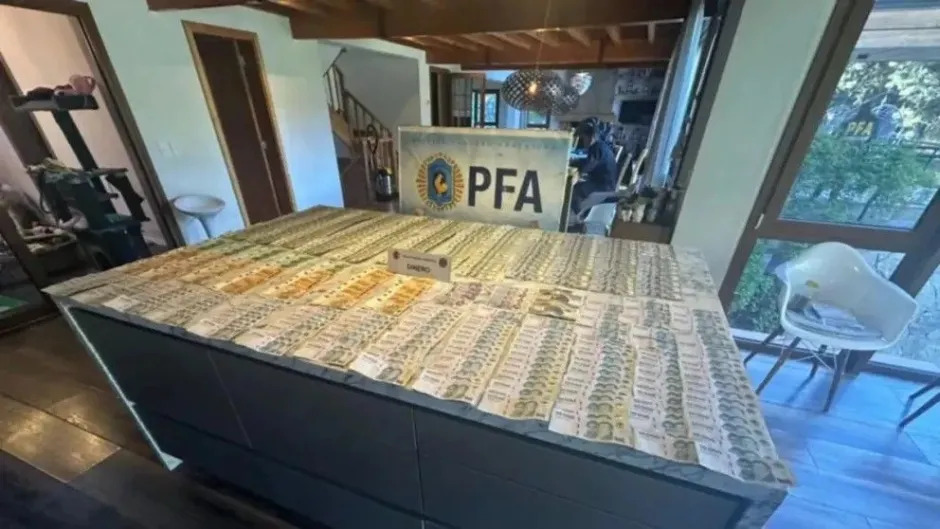 Nueve personas fueron detenidas en operativos de la Policía Federal en la vecina localidad y otros puntos del país. Se secuestraron 4,4 millones de dólares, 473 millones de pesos y criptomonedas.