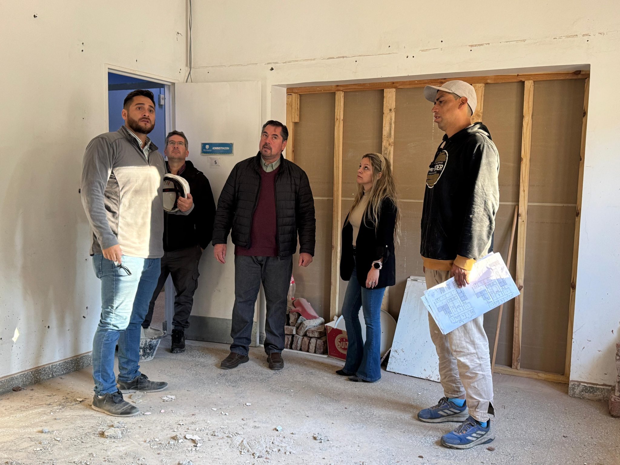 El Intendente Javier Murer, realizó un recorrido en las instalaciones del ex Hospital, el que será la nueva sede de la Escuela Técnica Nº 28. Durante la visita, el Intendente estuvo acompañando por el representante de la empresa encargada de las obras, Juan Aguilar del Grupo Soldin, la Secretaria de Viviendas e Infraestructura, Franca Cendra y el Coordinador del Área de Mantenimiento de escuelas, dependiente de la Secretaria de Viviendas e Infraestructura, Eduardo Mendoza.