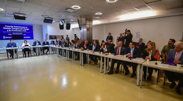 Durante su participación, el ministro Nicolini destacó que “en la provincia del Neuquén se unificó todas las áreas en relación con la emergencia y gestión de riesgo para darle mayor preponderancia y una respuesta rápida”.