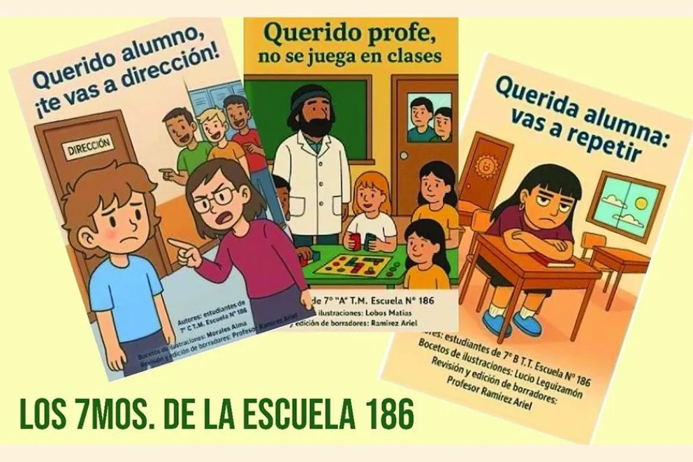 Los títulos editados son: “Querido alumno, ¡te vas a dirección!”; “Querido profe, no se juega en clases”; y “Querida alumna: vas a repetir”.