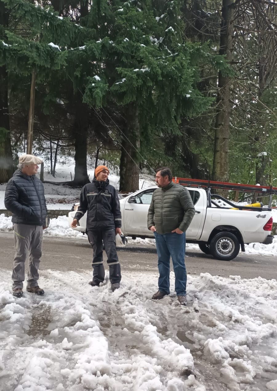 Desde las primeras horas de este sábado, trabajando personal del EPEN , SERVICIOS PÚBLICOS, INCENDIOS FORESTALES, BUSQUEDA Y RESCATE, BOMBEROS, PARQUES NACIONALES, VIALIDAD NACIONAL, PROTECCION CIVIL , SEGURIDAD, SERVICIO DE AGUA, PARQUES Y JARDINES, RSU y voluntarios que se suman para enfrentar las consecuencias del gran temporal de nieve.