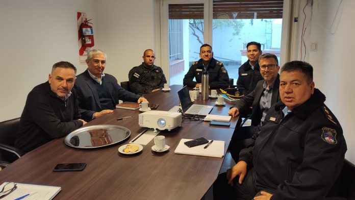 De la reunión participaron el subsecretario de Trabajo, Pablo Castillo, el director provincial de Tecnologías Aplicadas a la Seguridad, Daniel Domene, y el jefe de División Agencias de Vigilancia, Fernando Obando.