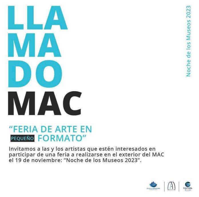 En este marco, convocan a artistas visuales que deseen participar de una feria de arte en pequeño formato a enviar su material para participar; cada artista podrá exponer de 5 a 20 obras que estarán dispuestas a la venta en el exterior del Museo de Arte Contemporáneo Conrad Meier (MAC).
