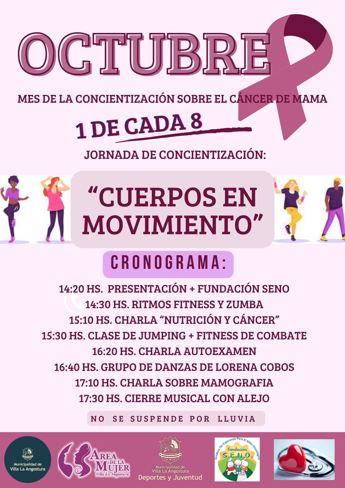 En el marco del Día Internacional de la Lucha contra el Cáncer de Mama, distintas instituciones de la vecina localidad de Villa La Angostura organizan la jornada “Cuerpos en Movimiento”, una propuesta para promover la prevención y la concientización abierta a toda la comunidad.
