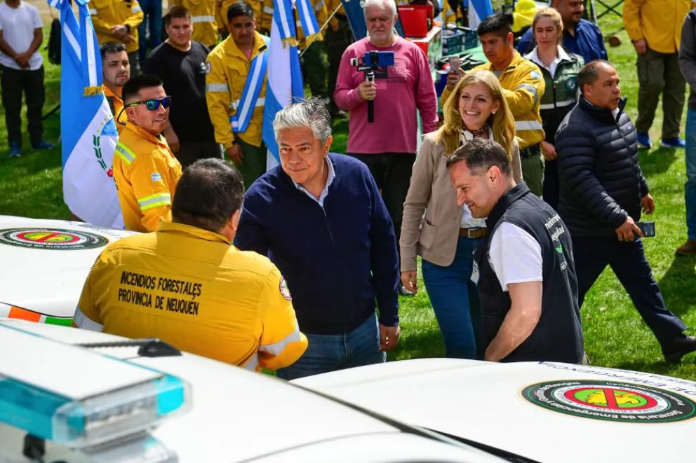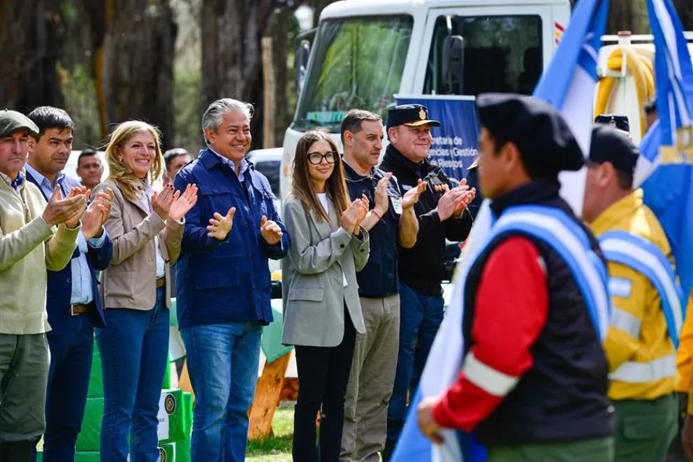 Parte de este equipamiento se entregó este viernes en Junín de los Andes, durante una visita del gobernador Rolando Figueroa, que estuvo acompañado por el ministro de seguridad, Matías Nicolini, y la secretaria de Emergencias y Gestión de Riesgos, Luciana Ortiz Luna, que buscó poner en valor la tarea de quienes arriesgan su vida para proteger los bosques, la fauna y a las comunidades.