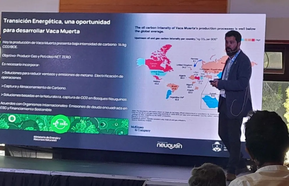 La presentación de Gulino incluyó un video institucional que detalla los tipos de energía generados en Neuquén, con énfasis en la producción de petróleo y gas. El material también expuso los volúmenes exportados, las concesiones hidrocarburíferas no convencionales otorgadas y el aporte energético de la provincia a nivel nacional.