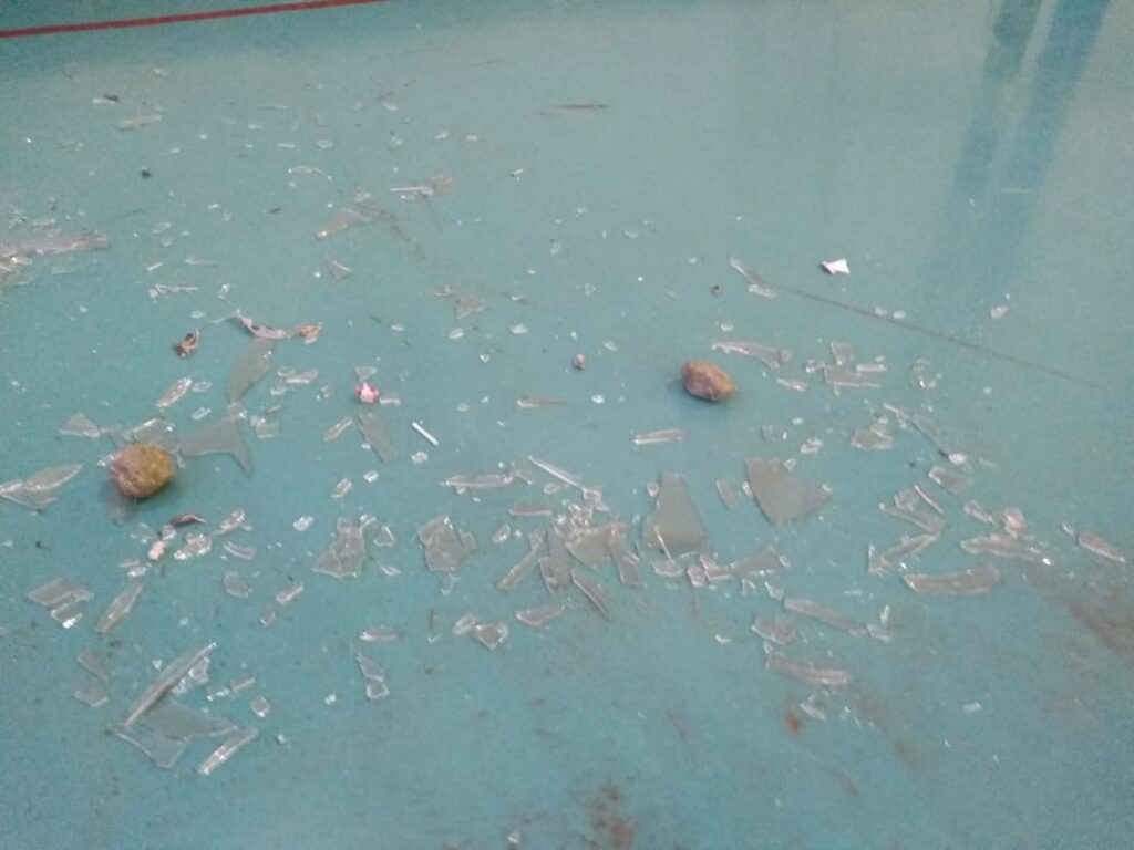 Un grupo de desconocidos alanzó piedras a diferentes ventanales del gimnasio, dejando como resultado vidrios rotos en la parte trasera y al frente.