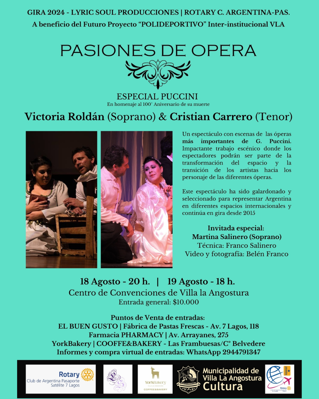 Desde el área de Cultura se anuncia la llegada de “Pasiones de Ópera”, un homenaje especial a Giacomo Puccini en el centenario de su fallecimiento. Este espectáculo contará con las voces de Victoria R...