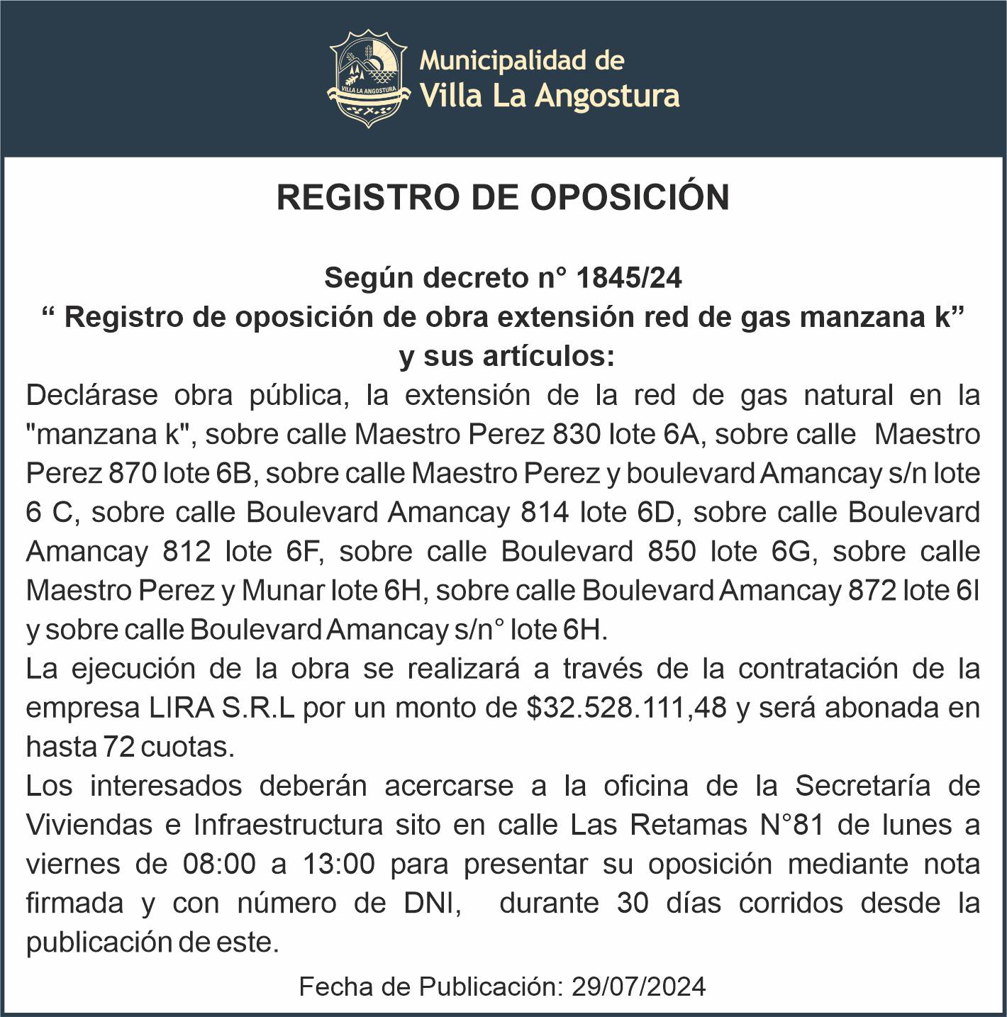 Registro de Oposición según Decreto N° 1845/24 sobre Manzana K