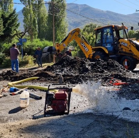 La situación se desencadenó durante las labores de adoquinado que forman la continuación del hormigón reticulado sobre la calle Las Retamas, extendiéndose hacia la escuela 186. Los trabajos de suelo a cargo de la empresa responsable de las obras tomaron un giro inesperado cuando, lamentablemente, un caño de gran importancia se rompió involuntariamente. Actualmente, más de 10 personas de la empresa constructora, junto con el personal del servicio de agua, se encuentran trabajando para cortar el suministro y proceder con la reparación.