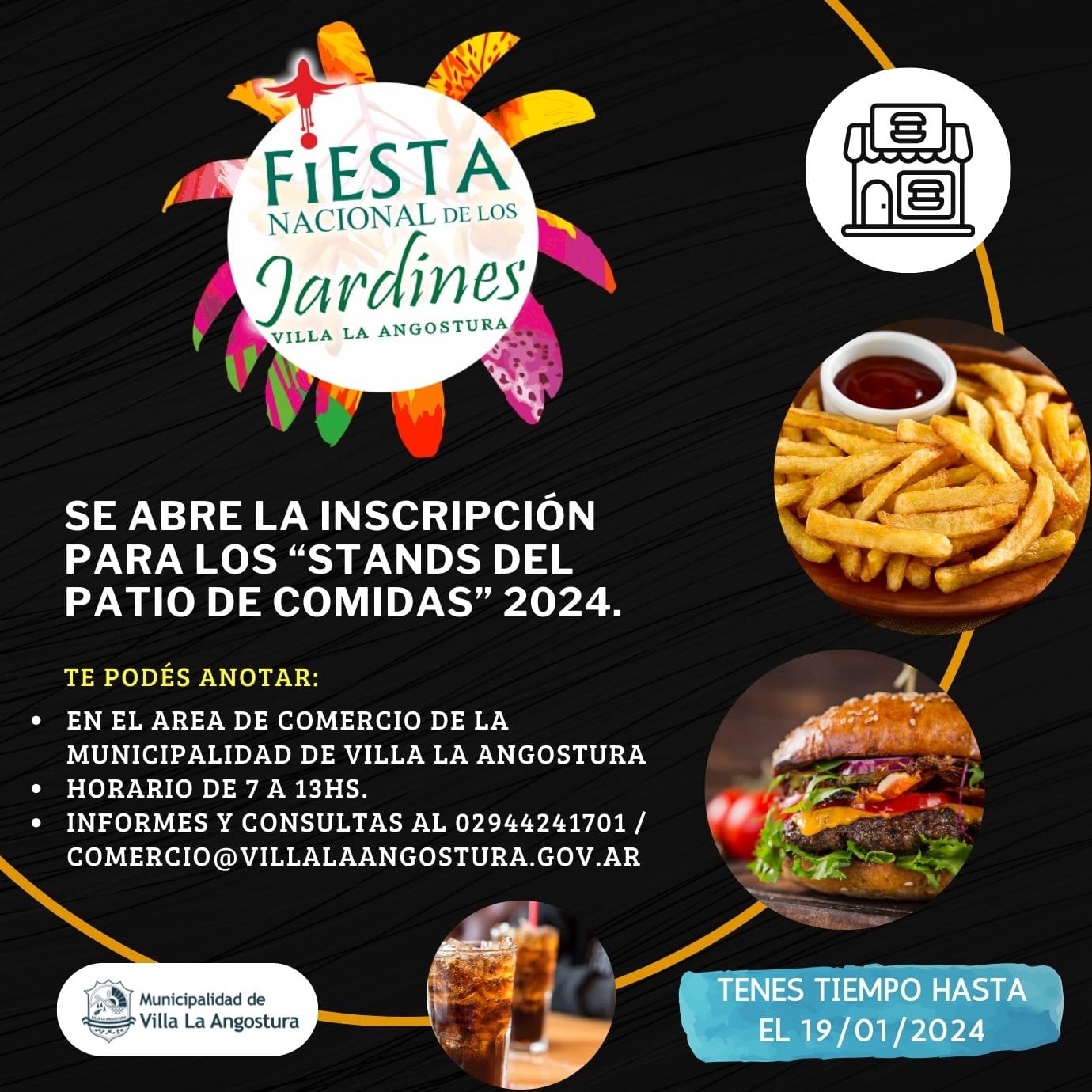 Se extiende la fecha límite de inscripción para postularse al premio de “Mejor Jardín 2024” y para participar en los stands del patio de comidas en la “11° Fiesta Nacional de los Jardines”, que se llevará a cabo los días 16, 17 y 18 de febrero en nuestra localidad.