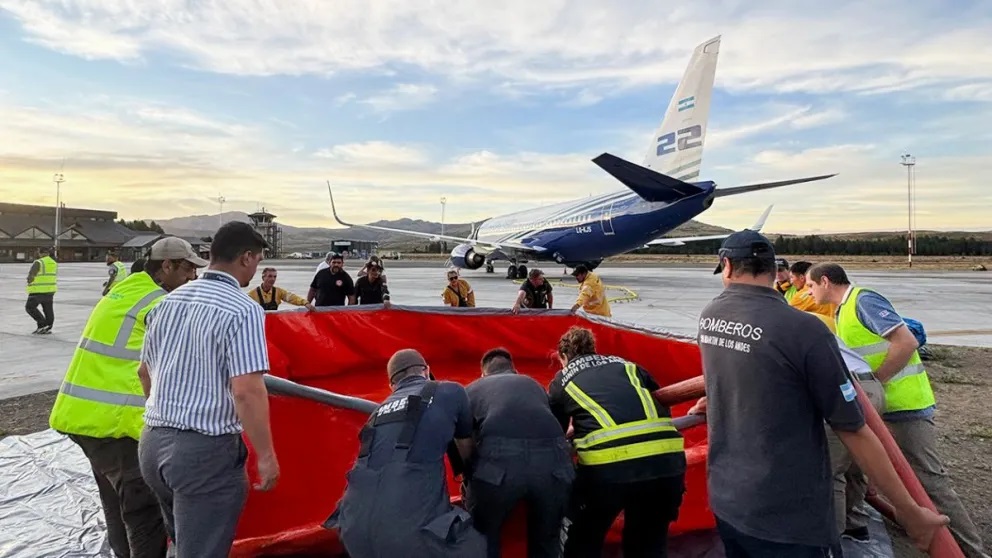 El avión opera directamente desde el aeropuerto de Chapelco, donde se instalaron piletones de agua con una bomba que asistirá en la carga del avión.