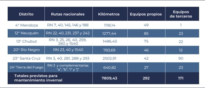 En este sentido, a través de los distritos involucrados Vialidad Nacional define las tareas que se llevarán adelante durante la época más fría del año, que constan de trabajos preventivos y correctivos ejecutados esencialmente con equipamiento y personal propios y complementados mediante la contratación de empresas especializadas del rubro.